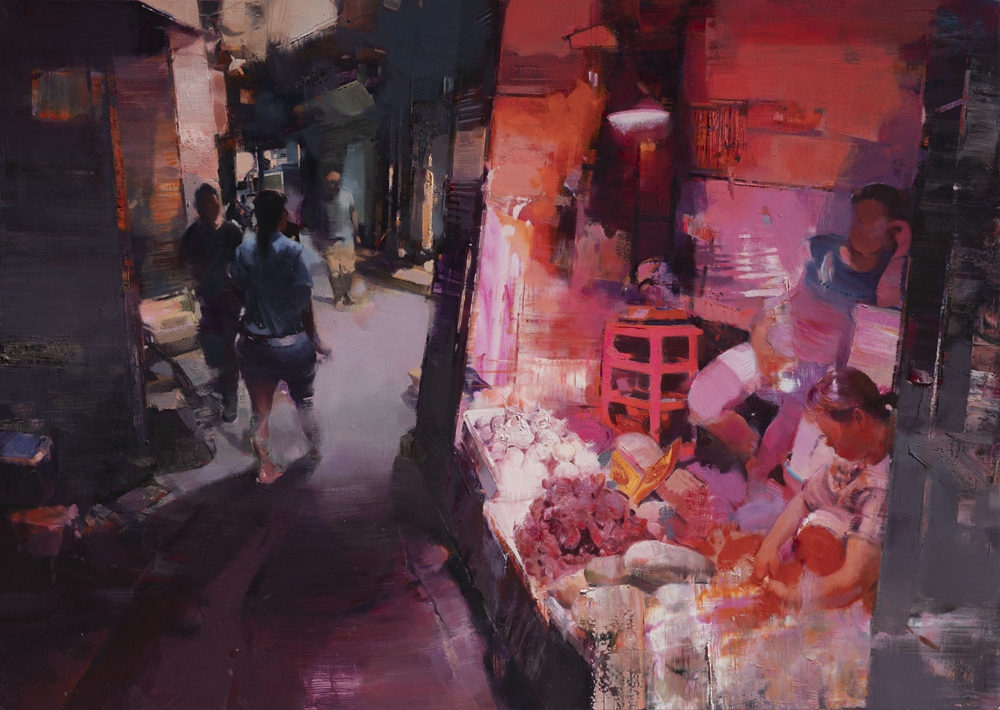 《寻光所见2》作品创作灵感来源于静谧的夜晚,繁华热闹已成为都市生活的主旋律,但人们却偏爱那些安静温柔的角落。华灯初上,画家将画笔对准城市的一隅,期望将社会飞速发展的同时,人们依旧用心生活的一面描绘出来,在每个霓虹璀璨的夜晚,亮起的万家灯火也点亮并守护着城市每个角落的烟火气与人情味。