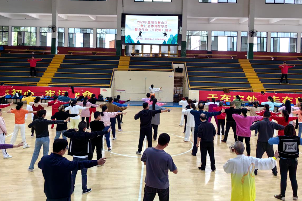 4月27日,赫山区三级社会体育指导员健身气功(八段锦)培训在赫山体育馆举行,来自部分区直单位的干职工和中心城区街道的社区居民共计150余人参加此次培训。培训邀请湖南城市学院体育学院教师、武术国家二级运动员、一级裁判员、健身气功一级社会体育指导员廖玉美老师为学员们授课。
