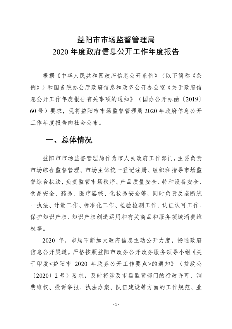 益阳市市场监督管理局2020年度政府信息公开工作年度报告