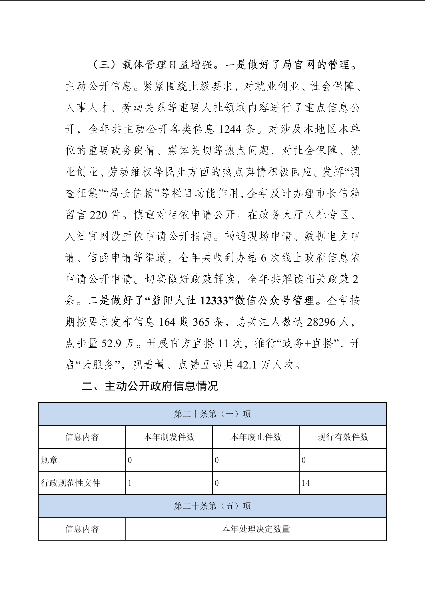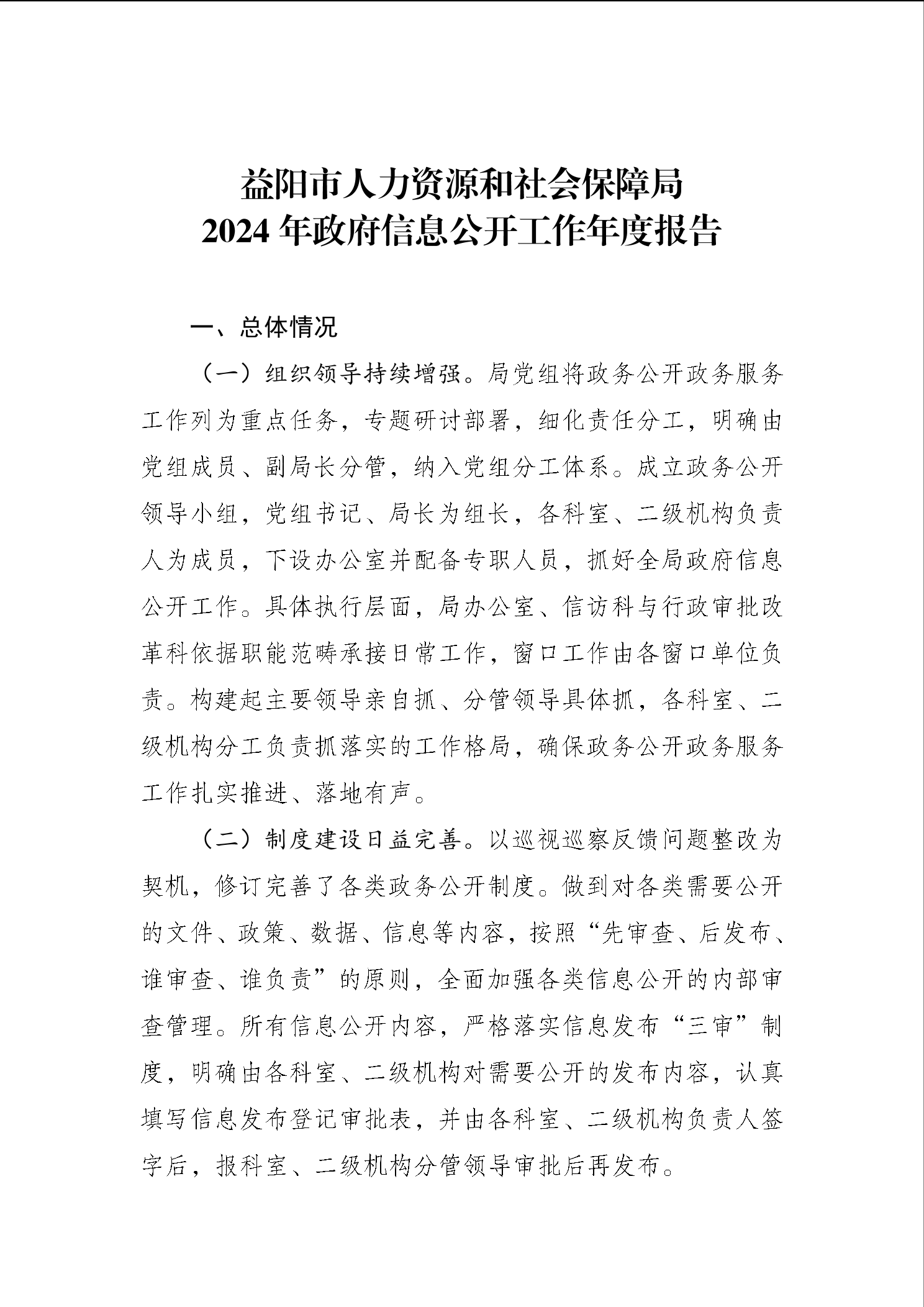 益阳市人力资源和社会保障局2024年政府信息公开工作年度报告