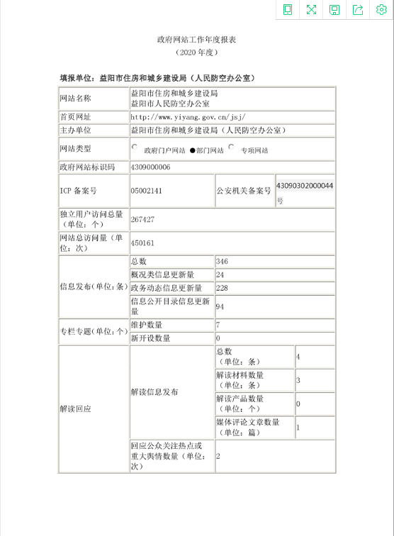 益阳市住房和城乡建设局(人民防空办公室)2020年度政府网站工作年度报表
