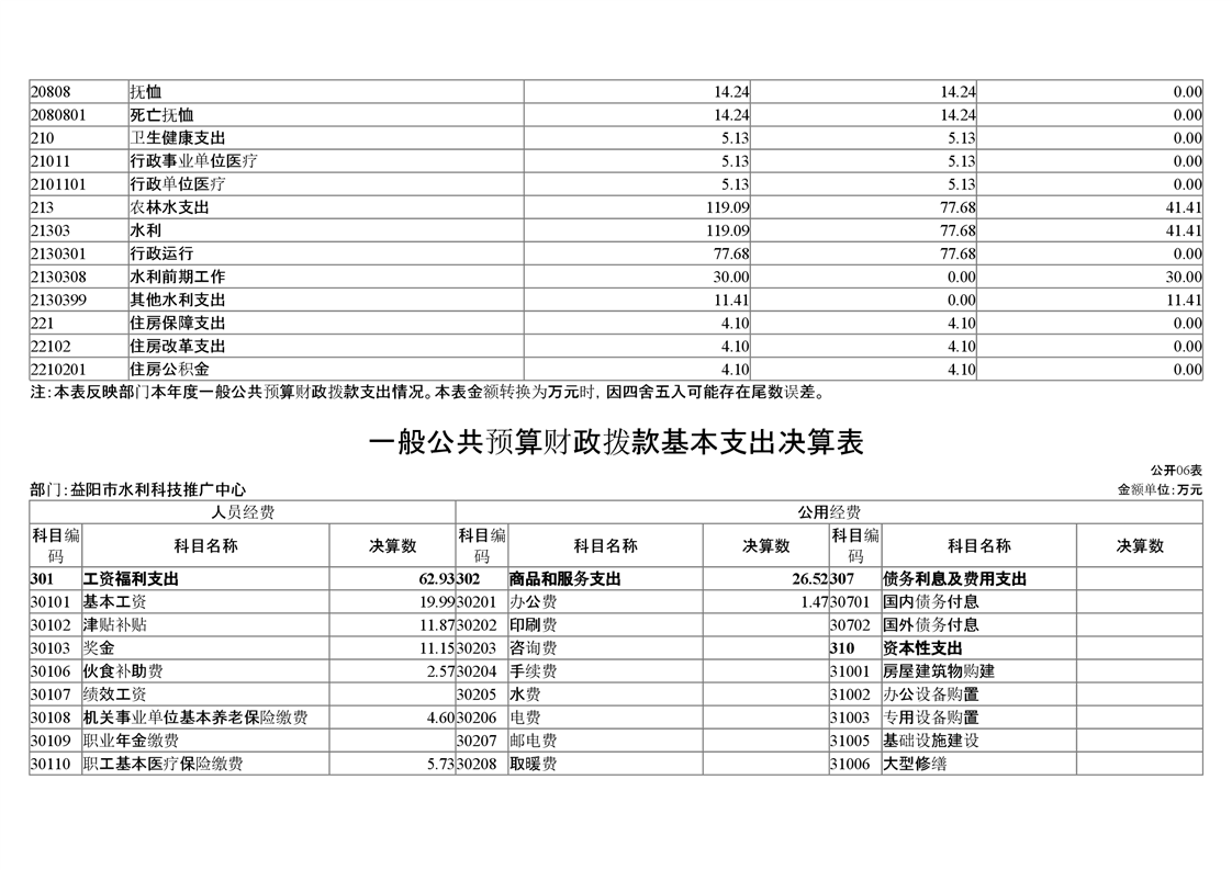 益阳市水利科技推广中心2020年度部门决算公开说明
