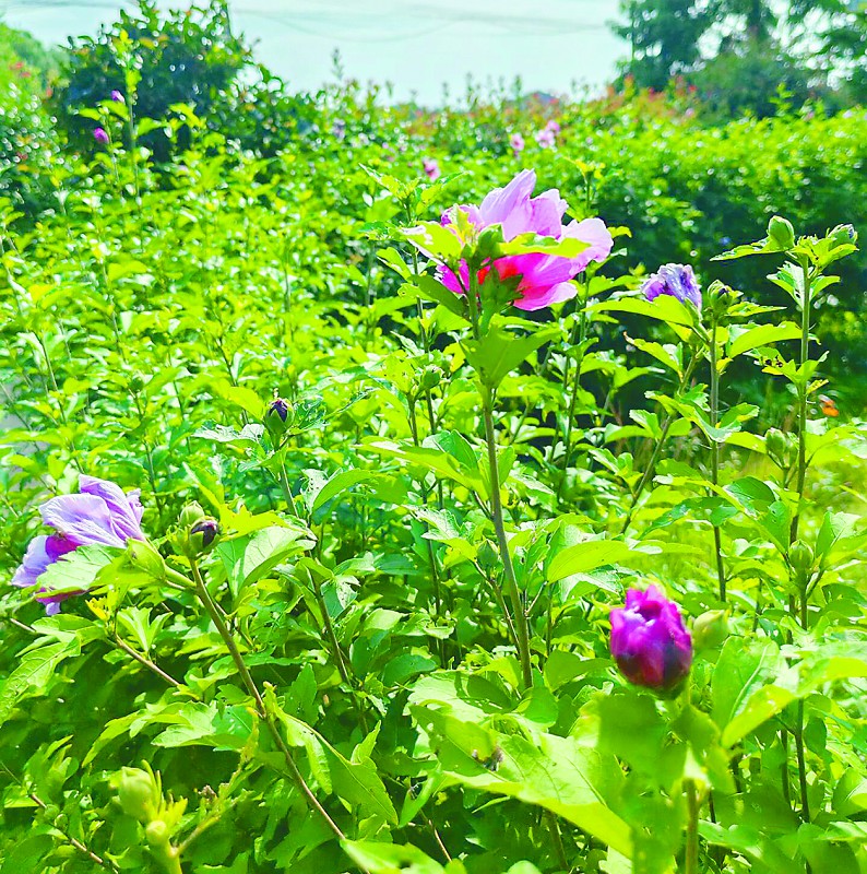 时下,正是木槿花盛开时节。6月10日,在资阳区长春镇先锋桥村千亩木槿花基地,前来赏花的游客络绎不绝。村党总支书记黄正和介绍,木槿花除了可观赏、药用外,还可做成美食。据检测分析,木槿花的营养价值高,富含蛋白质、氨基酸、粗纤维、维生素和钙铁锌等营养物质。
