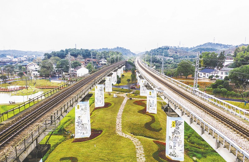 周立波长篇小说《山乡巨变》连环画长廊,成了景区一道亮丽风景。