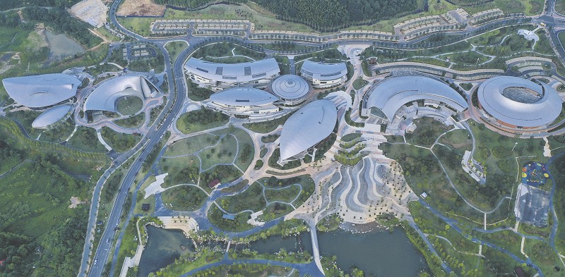 “一园两中心”是集科技普及、文化展示、市民休闲、观光旅游、政务服务于一体,具有益阳特色的地标性建筑群,由梓山湖生态公园、益阳市市民文化中心、益阳市市民服务中心三部分组成。