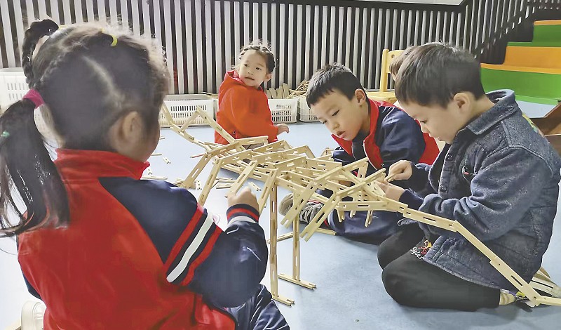 将地方特色产业与教育文化深度融合,让翠竹从山林走向课堂,沾溪镇中心幼儿园教师胡学锋道出了初心:“我们致力于让竹文化在孩子们手中传承、创新、发展。”在沾溪镇中心幼儿园,竹元素已深度融入教学场景。教师们自主研发,30余种玩教具针对不同年龄段的发展目标精心设计。大班孩子用竹片拼搭几何模型,中班幼儿通过竹制乐器感知韵律,小班萌娃则用竹制积木认识形状。沾溪镇中心学校校长傅才和介绍,竹玩项目开展4年多来,幼儿动手能力得到显著提升,园所连续5年获评全县优秀幼儿园。
