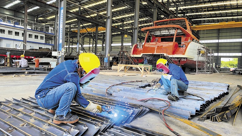 海荃游艇的车间内,也是一片繁忙景象。这里的钢制客船、铝合金双体游艇等金属船舶订单不少,来自贵州遵义的焊工骆科会擦着脸上的汗说,他们来10多天了,一直没停下过手中的活。