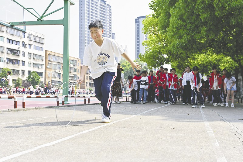市教育局明确要求,各校需通过“基础课时+弹性课时”模式保障学生每日中高强度锻炼1小时,叠加15分钟课间活动后,综合运动时长突破2小时。秀峰路学校通过微调作息表(午休推迟10分钟),实现教学秩序平稳过渡;梓山湖学校新增特色体育课,低年级设置趣味游戏,高年级开展花样跳绳等特色项目。益阳市实验学校将大课间升级为“文体综合体”,武术方阵与舞蹈方阵交相辉映,学生参与率达100%。“现在课间能和同学开展足球对抗赛,比待在教室里有意思多了。”资阳区东门口小学五年级学生石浩然在绿茵场上奔跑的身影,正是这场改革的生动缩影。益师附小推出的“微运动”计划,让跳绳、螃蟹赛跑等轻量化活动成为课间新时尚;资阳区学门口学校将课间游戏细化为摸高区、投掷区等主题空间,学生可自主选择参与“萝卜蹲”“跳跳蛙”等创意项目。