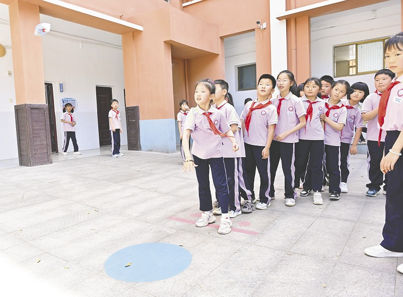 ▲资阳区汽车路小学利用有限的场地开展课间趣味游戏。