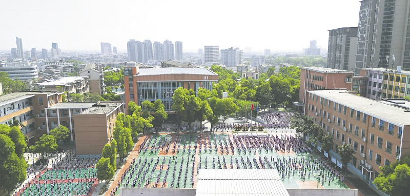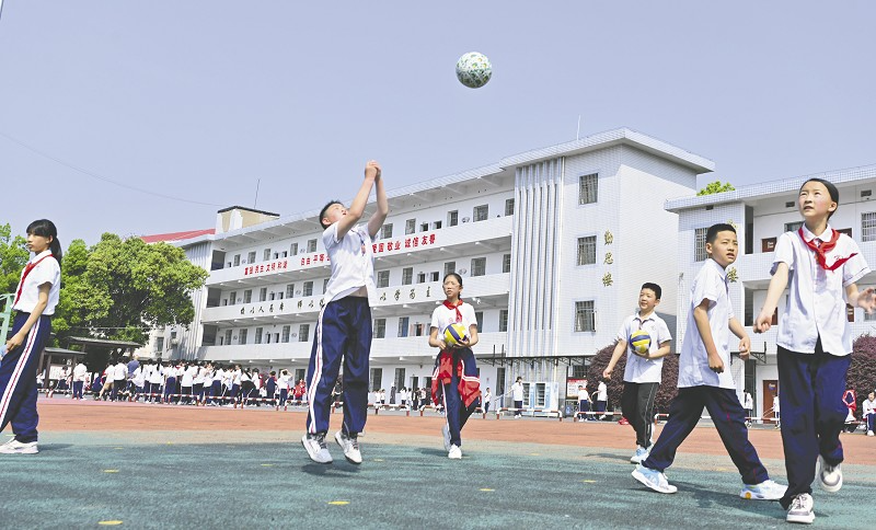 ▲资阳区东门口小学排球空中飞,处处洋溢着大课间的欢乐。