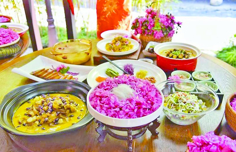村民共享木槿花宴。刘馨予摄 以木槿花为原材料制成的佳肴。刘馨予摄 8月4日,南县乌嘴乡赛河村,村民陈伟家后院弥漫着清雅花香。阳光下,成片的木槿花汇成一片梦幻的紫色...
