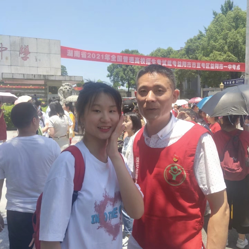 把公益当作事业来做,昌朝阳觉得亏欠家人太多。去年,大女儿昌熊慈参加高考,他没有去陪考,却在益阳市一中考点外,作为爱心护考队的负责人做着协调工作。女儿走出考场那刻,看到了现场忙得大汗淋漓的父亲,骄傲地告诉自己的同学,“这是我的爸爸,他是名志愿者。”正在送考的妻子熊凌子抢拍下了那动人的一幕,成为记忆里的珍藏。其实,女儿从5岁开始,就跟着父亲做义工,她也是父亲的骄傲。