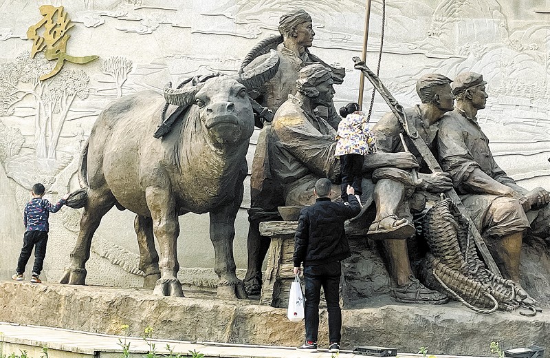春和景明,惠风和畅,正是出游好时节。2月26日,许多市民来到益阳高新区谢林港镇清溪村游玩,跳广场舞、放风筝、晒太阳……好不快活。但记者在《山乡巨变》群雕旁发现,攀爬雕像已然成为小朋友的“新乐子”,爬上爬下、蹦蹦跳跳,这样既不雅观也不安全,文明旅游需要大家一起努力。 周蓉 摄