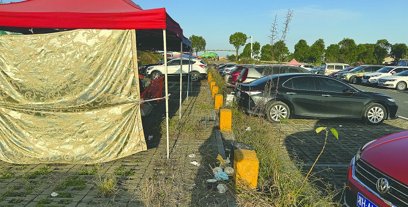 11月7日,记者在十洲公园的露天停车场看到,一辆辆小车整齐地排列着,但有些车位上却搭起了一个个临时棚子。走近一看,原来是一些当地居民占用车位摆摊,出售擂茶等小吃。游客在此处品尝美食后,留下的垃圾却被店主随意堆放在车位上,无人清理。原本宽敞干净的停车场变得遍地都是垃圾。这不仅严重影响了停车场的卫生环境,也给其他游客带来了极大的不便,甚至有些游客因此而放弃了停车。不仅如此,记者还注意到,在公园的草坪上,一些游客在野餐后留下的垃圾也未被清理。“简直太煞风景了!”游客张女士表示,原本带着家人开车过来赏花,一看到这些垃圾,兴致瞬间就消失了一大半。“路上千般景,最美是文明。”旅游是一项发现美、欣赏美、享受美的活动,这些不文明旅游行为不仅破坏了公园的环境,也影响了其他游客的心情,呼吁每一位游客都能爱护环境、文明旅游。