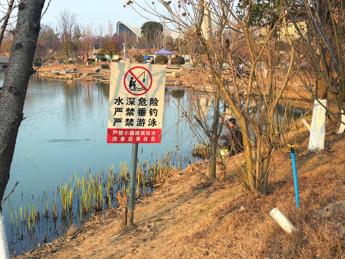近日,记者在益阳市“一园两中心”看到,一名男子无视近在咫尺“禁止钓鱼”警示牌,在湖边违规钓鱼。