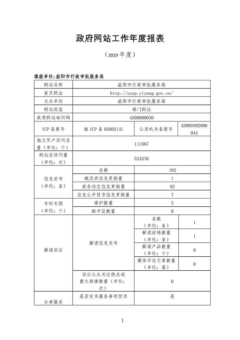 2019年益阳市政府网站年度报表专栏