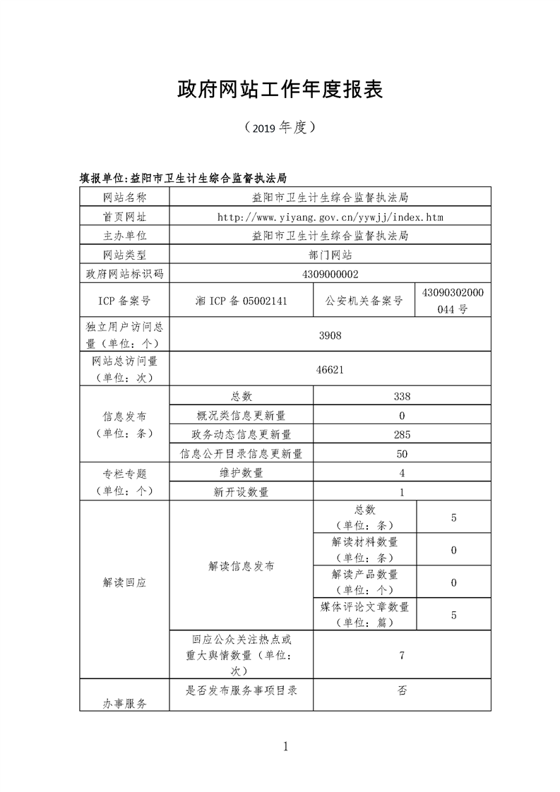 2019年益阳市政府网站年度报表专栏