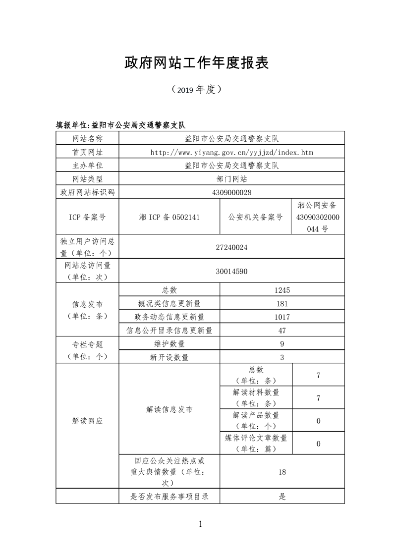 2019年益阳市政府网站年度报表专栏