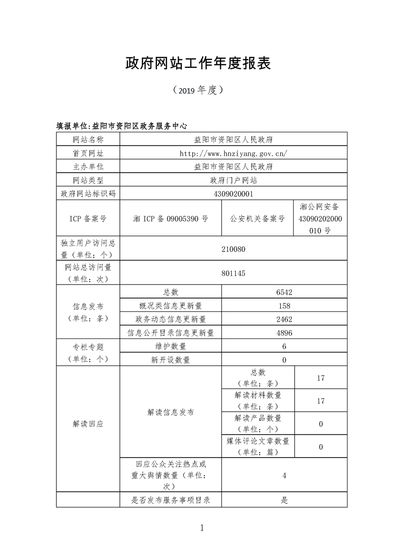 2019年益阳市政府网站年度报表专栏