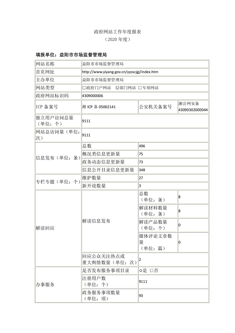 2020年益阳市政府网站年度报表专栏
