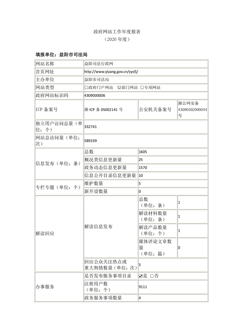2020年益阳市政府网站年度报表专栏