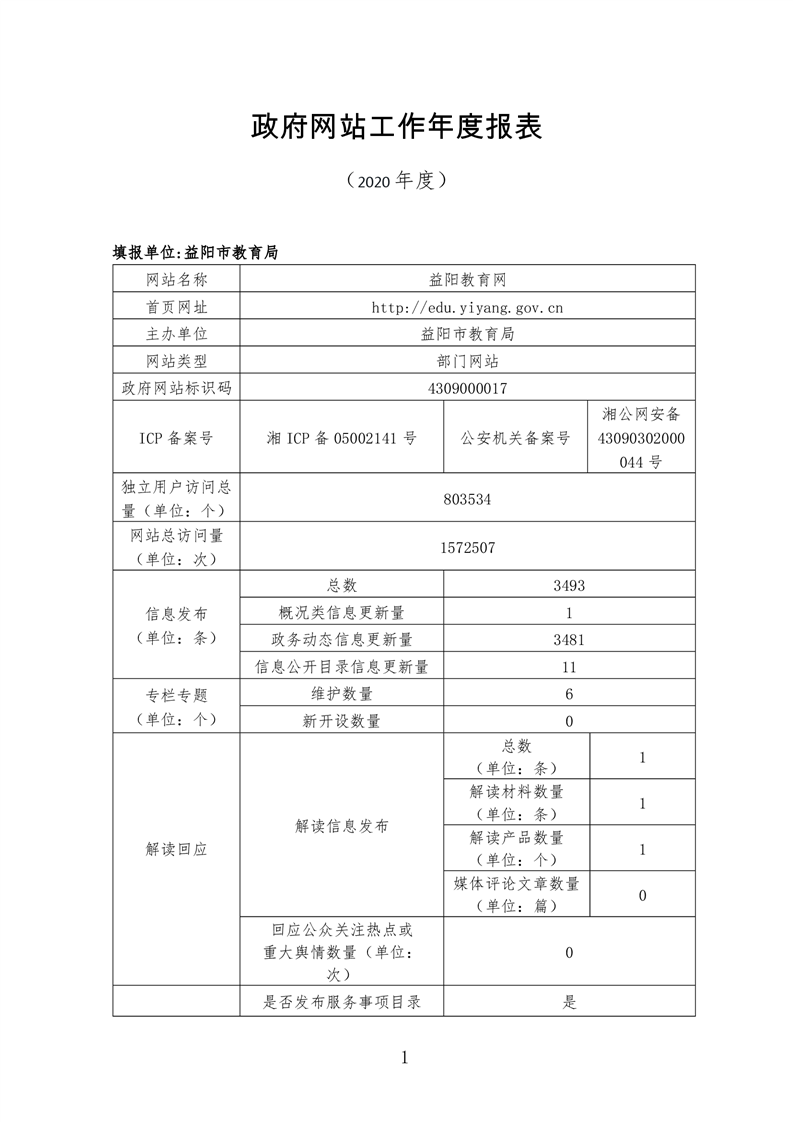 2020年益阳市政府网站年度报表专栏