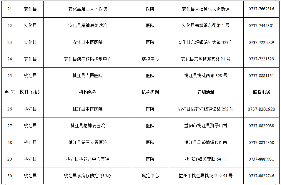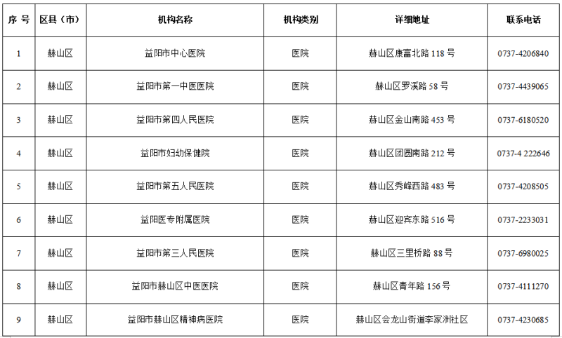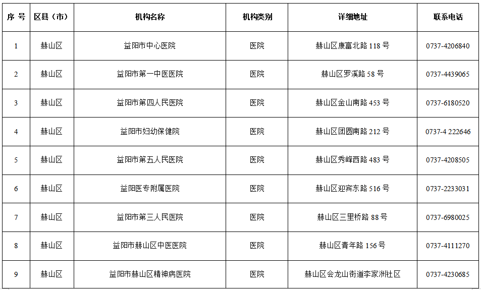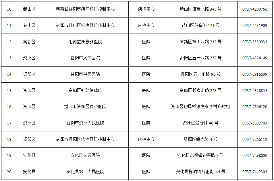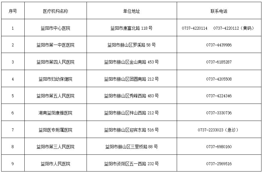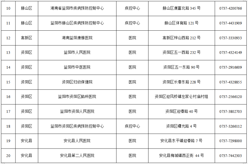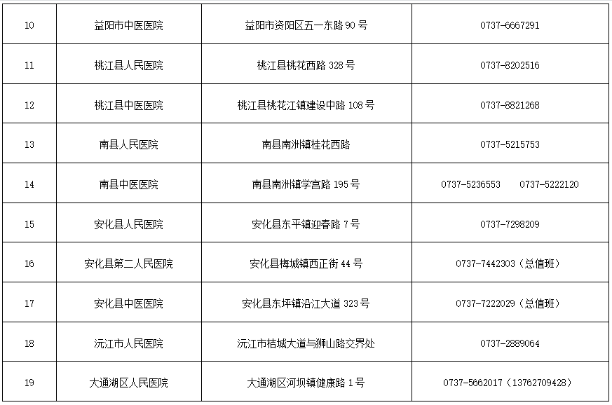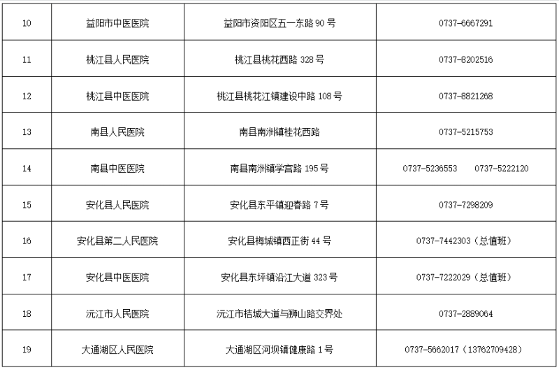 1.益阳市19家医疗机构发热门诊名单