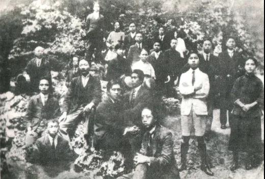 ▲1920年7月,蔡和森(后排右二)等部分新民学会会员及工学励进会会员在法国蒙达尔纪杜吉公园合影。