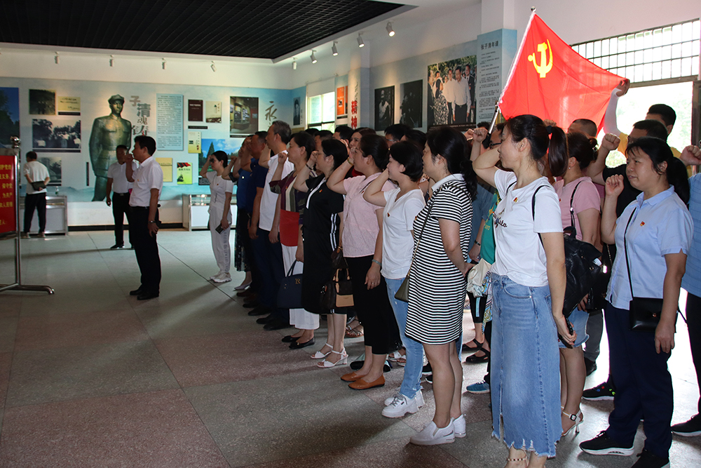 在红军将领张子清烈士纪念馆,全体党员干部举起右手,一起重温了入党誓词。随后,现场聆听了讲解员生动、详细的讲解,瞻仰了先烈雕塑,参观了珍贵史料,学习了先烈的光辉事迹,感受血与火的峥嵘岁月,充分认识革命先辈追求真理、无私奉献的奋斗精神。