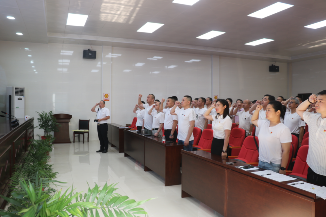 为推动党史学习教育扎实开展,继承爱国为民、艰苦奋斗的优良传统,弘扬坚韧不拔、真抓实干的奋斗精神,6月22日上午,南县市场监管局党组书记、局长何海林以“铭记党史 不忘初心”为主题,给全局党员讲授了一堂主旨鲜明、思想深刻的专题党课,并带领全体党员重温了入党誓词。
