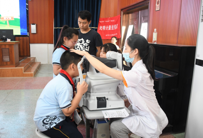 活动中,爱尔眼科医院眼健康发展部主任吴蓝为同学们作眼健康知识讲座,讲解近视的产生与危害、用眼卫生与科学防治等相关知识,专业医生还免费为145名学生提供视力测量、电脑验光、建立视力档案。同时,检定所工作人员用照度检测仪现场为该校48个教室进行光照环境测量,并根据照度测试结果,向校方提出改善教室光线条件的建议,让同学们不出校园就享受到“光明计量”带来的实惠,受到学校师生的欢迎和好评。