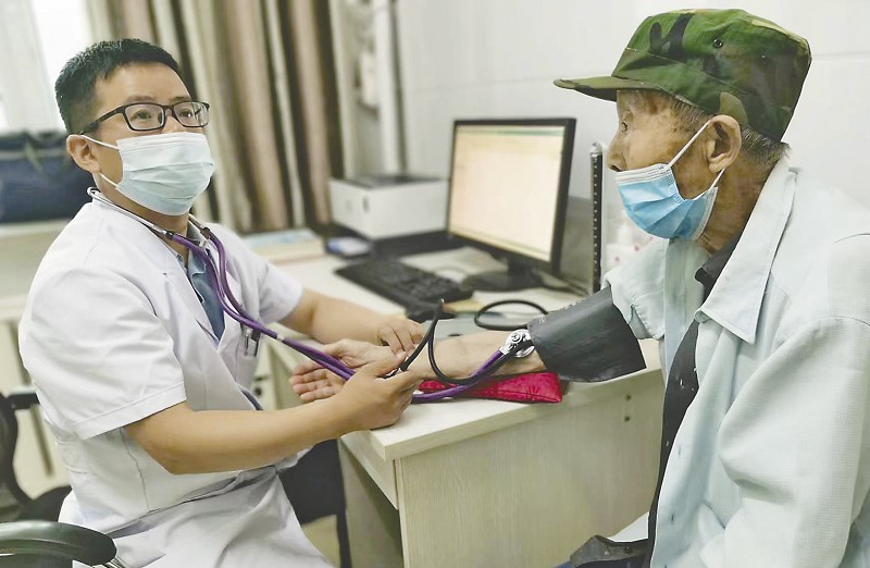 阮宾为患者做体检。