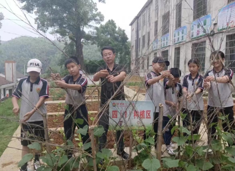 2020年,教育部提出要在大中小学设立劳动教育必修课。如何让留守儿童体会劳动之乐,如何用劳动促进德育,成了何锋的新课题。“一定要让孩子动起来!”当年9月,学校开辟校内劳动教育基地。短短一周,一块杂草丛生、土壤板结的荒地,在师生的汗水浇灌下,变成横平竖直的菜地。每个班级认领菜地,孩子自带菜苗,师生体验着翻土、播种、除草、除虫、施肥、收获的全过程,有了“一块巴掌大的土地种4种菜”“带一包干牛粪当肥料”等趣闻。随着菜园吐出新绿,孩子们沉浸式了解蔬菜的生活习性和生长过程,菜园成了孩子的乐园,菜地里找不到一根杂草。