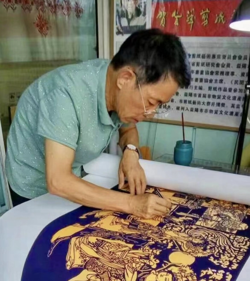 今年,贺春华已经71岁。他认为,套色剪纸需要传承。“我曾是一名军人,也是一名共产党员,我不仅想把传统文化发扬光大,还想用剪纸艺术传播军旅文化、红色文化。”怀着这样的想法,贺春华在资阳区长春镇紫薇村村民服务中心开办了“益阳套色剪纸传习馆”。10余年来,他坚持在全市10余所中小学开展义务教学,在传授剪纸艺术的同时,给学生们讲述革命故事以及自己的从军经历,潜移默化地将红色文化植入孩子们心中。