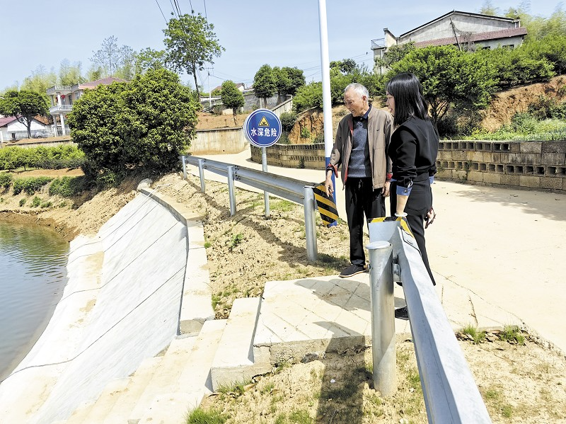 “去年发生落水事件时,这条路坑坑洼洼,山塘的周围也没安装护栏,现在路修好了,护栏装好了,更加安全了。”4月15日上午,在赫山区沧水铺镇砂子岭村金家组,年过七旬的村民唐克明兴高采烈地拉着记者来到家门前的山塘边,详细地介绍起来。这个山塘,正是他两次救起同一名落水者的地方。因两次施救落水者,唐克明获评2024年四季度见义勇为“湖南好人”。
