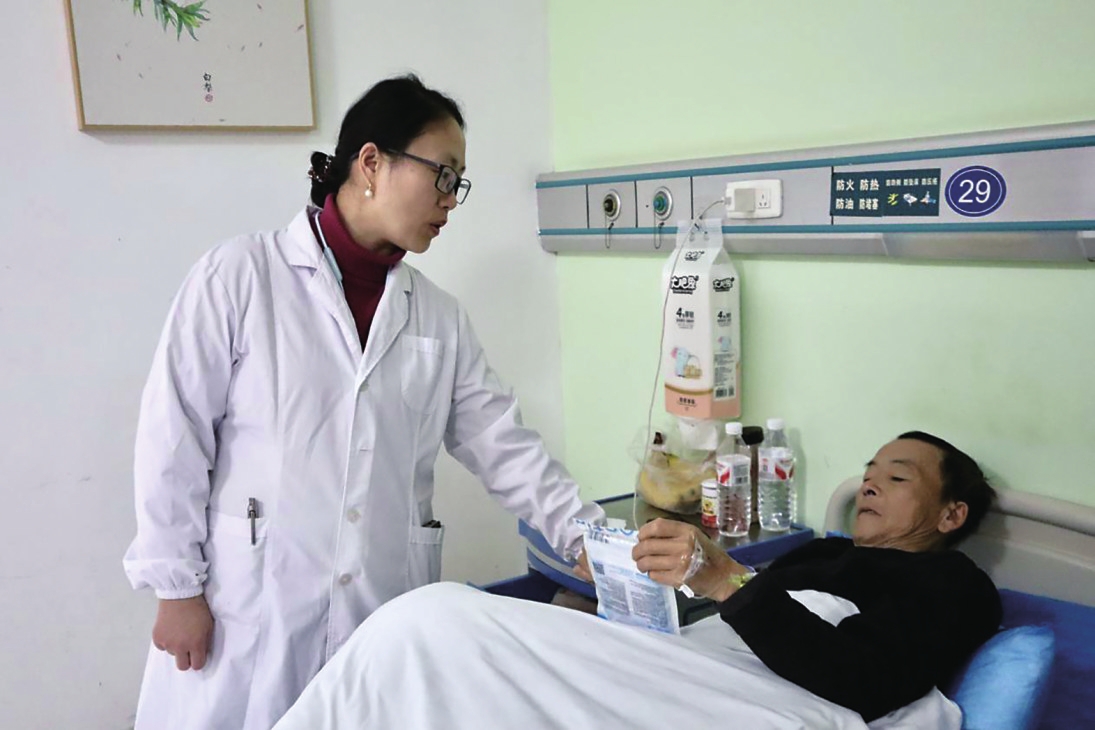 崔娜妮(左)了解患者康复情况。刘馨予摄
