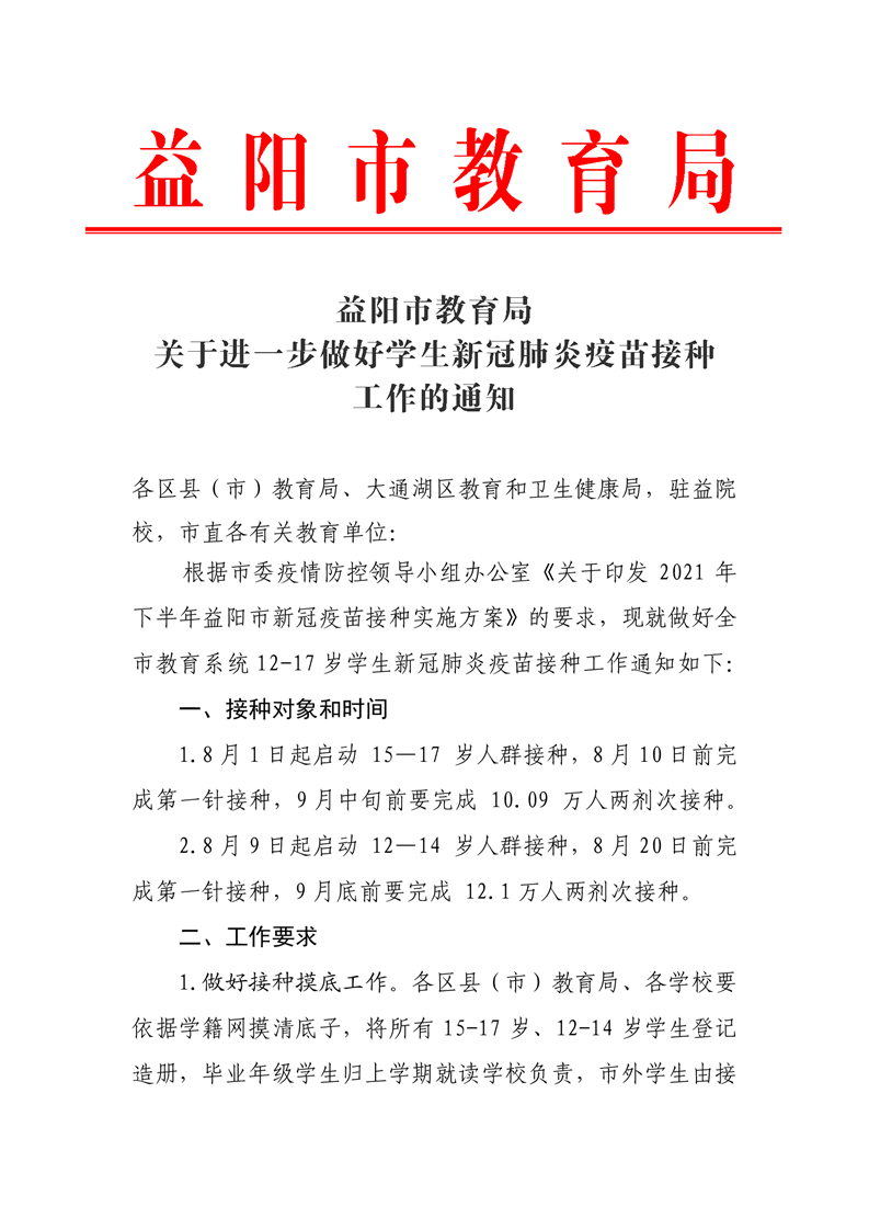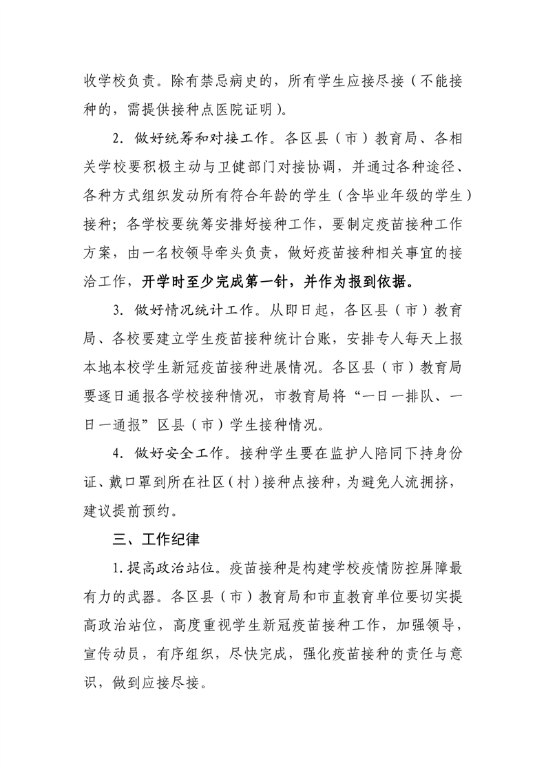 【教育】关于进一步做好学生新冠肺炎疫苗接种工作的通知