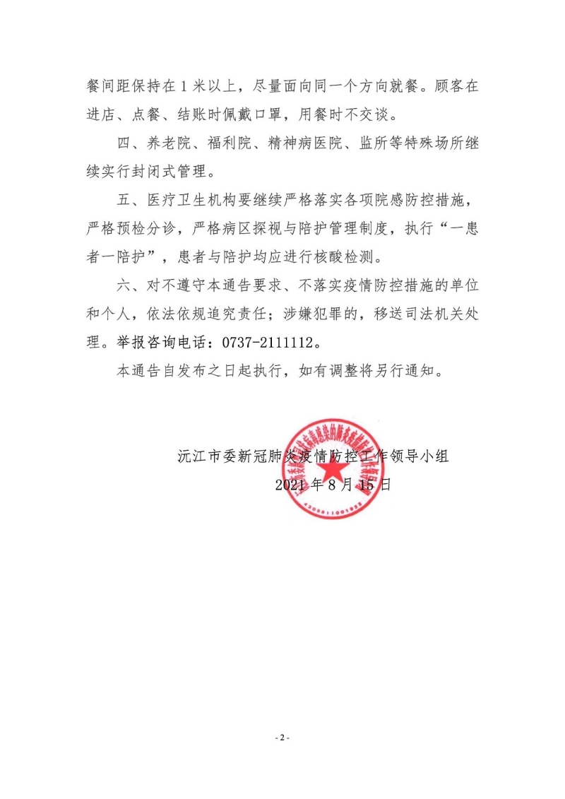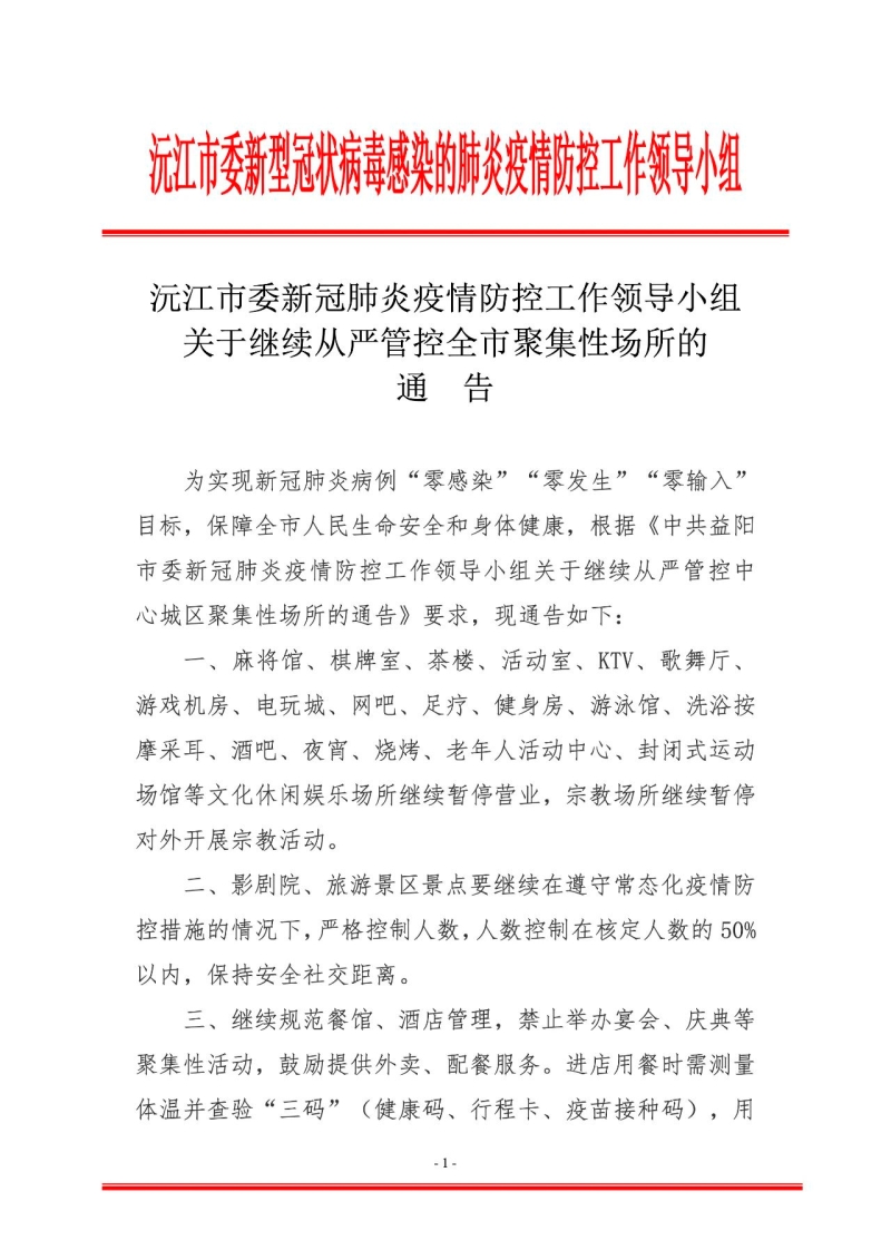 沅江市:关于继续从严管控全市聚集性场所的通告