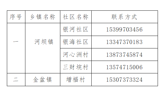河坝镇:银河社区 银海社区 河心洲村 三财垸村全体居民和外来人员