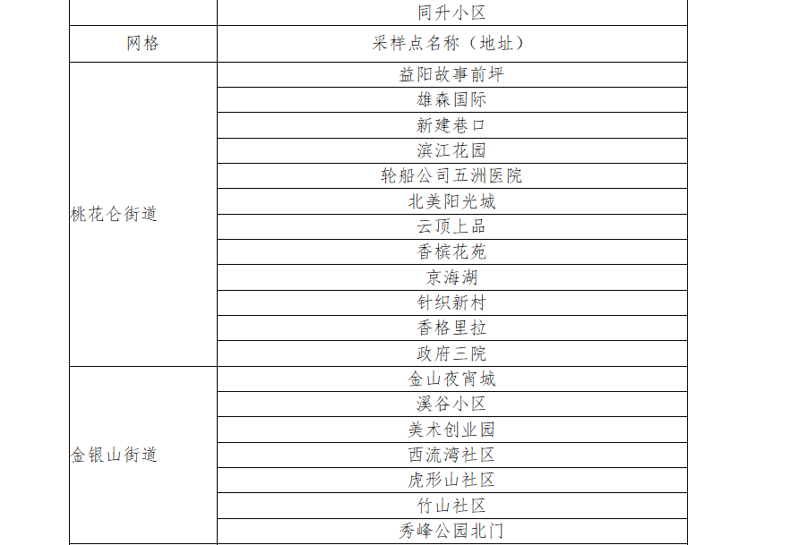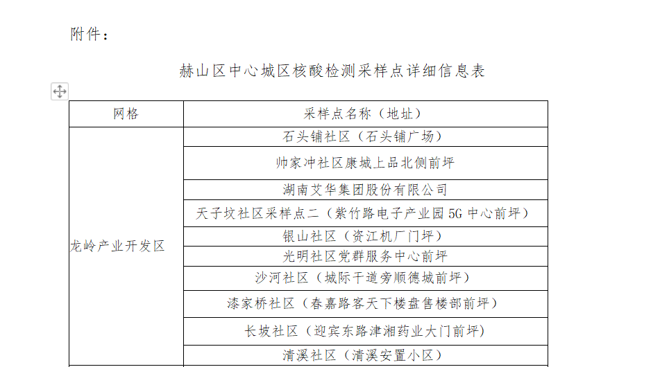 附件:赫山区中心城区全员核酸检测采样点详细信息表