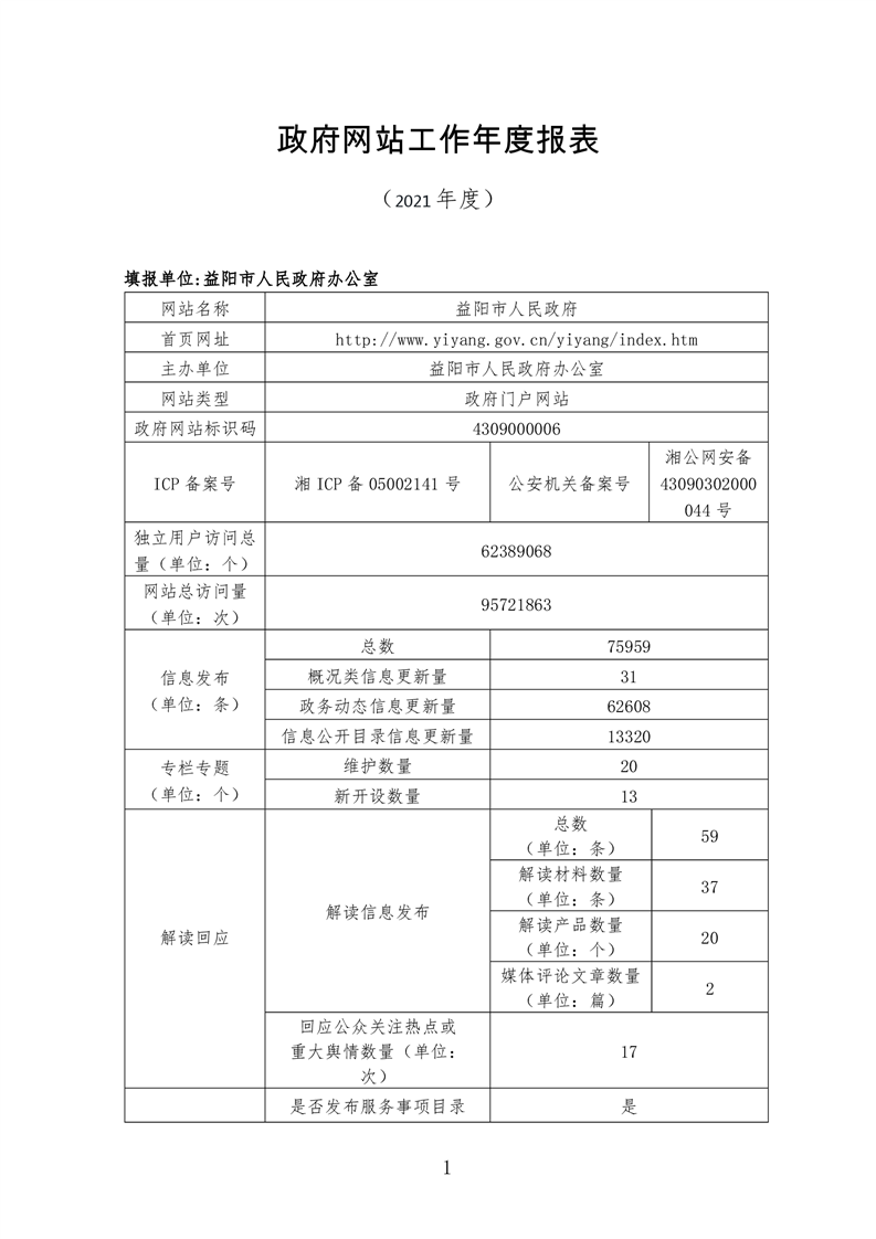 2021年益阳市政府网站年度报表专栏