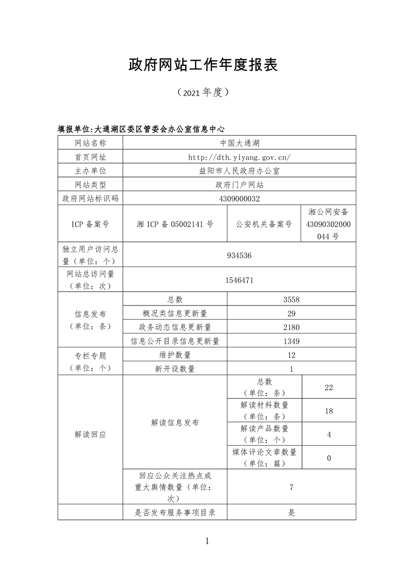 2021年益阳市政府网站年度报表专栏