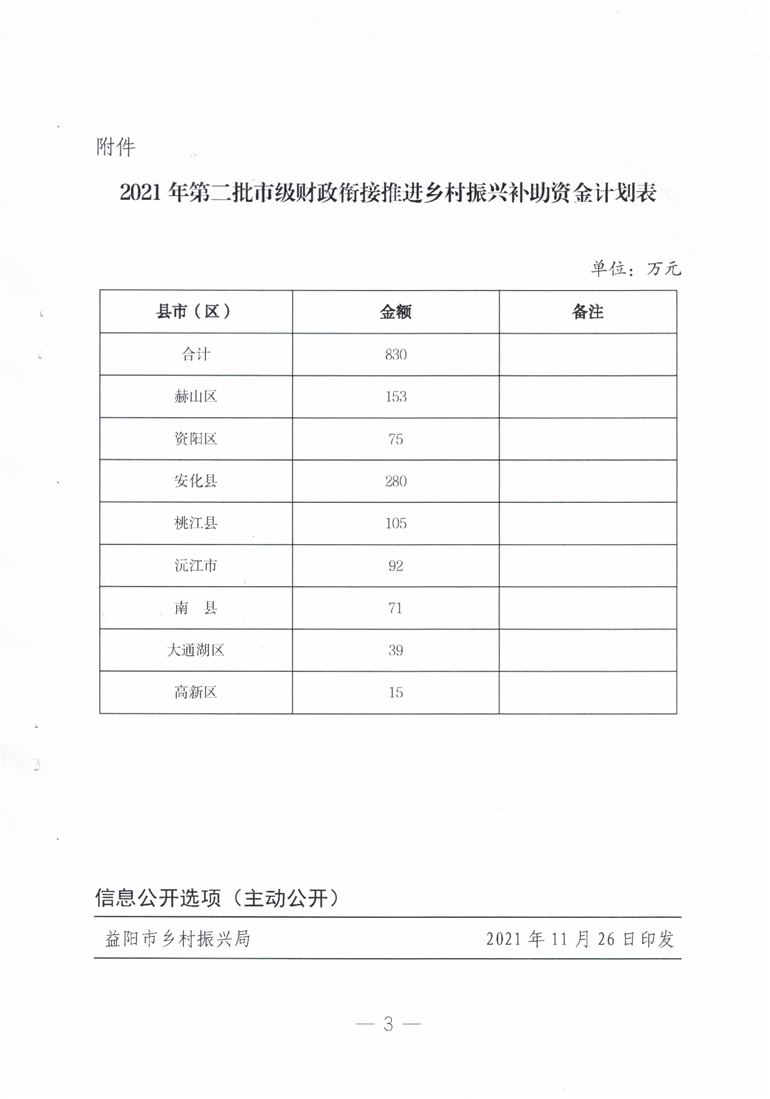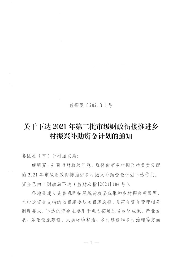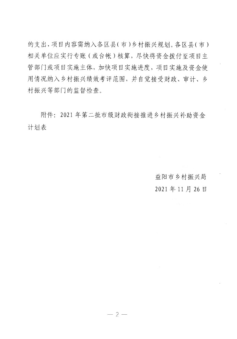 关于下达2021年第二批市级财政衔接推进乡村振兴补助资金计划的通知