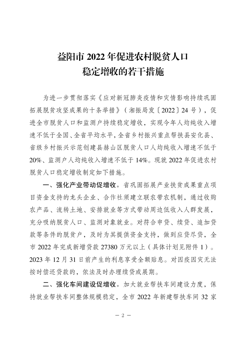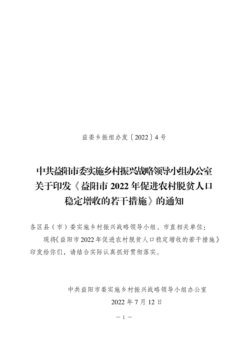 关于印发《益阳市2022年促进农村脱贫人口稳定增收的若干措施》的通知