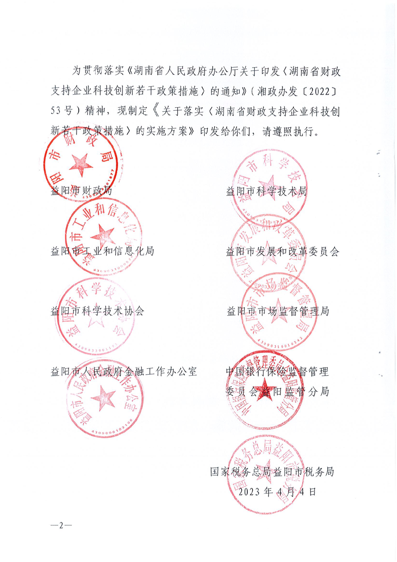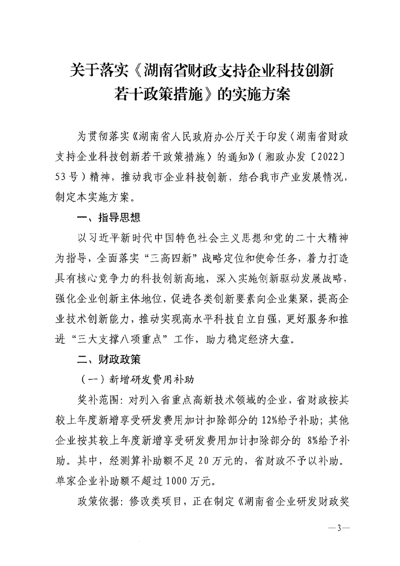 印发《关于落实〈湖南省财政支持企业科技创 新若干政策措施〉的实施方案》的通知