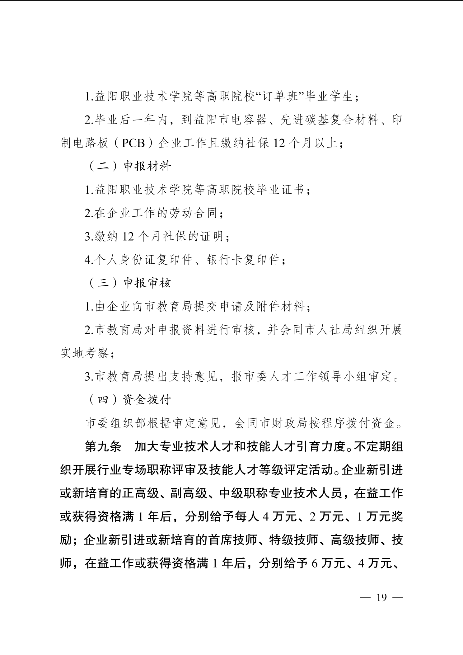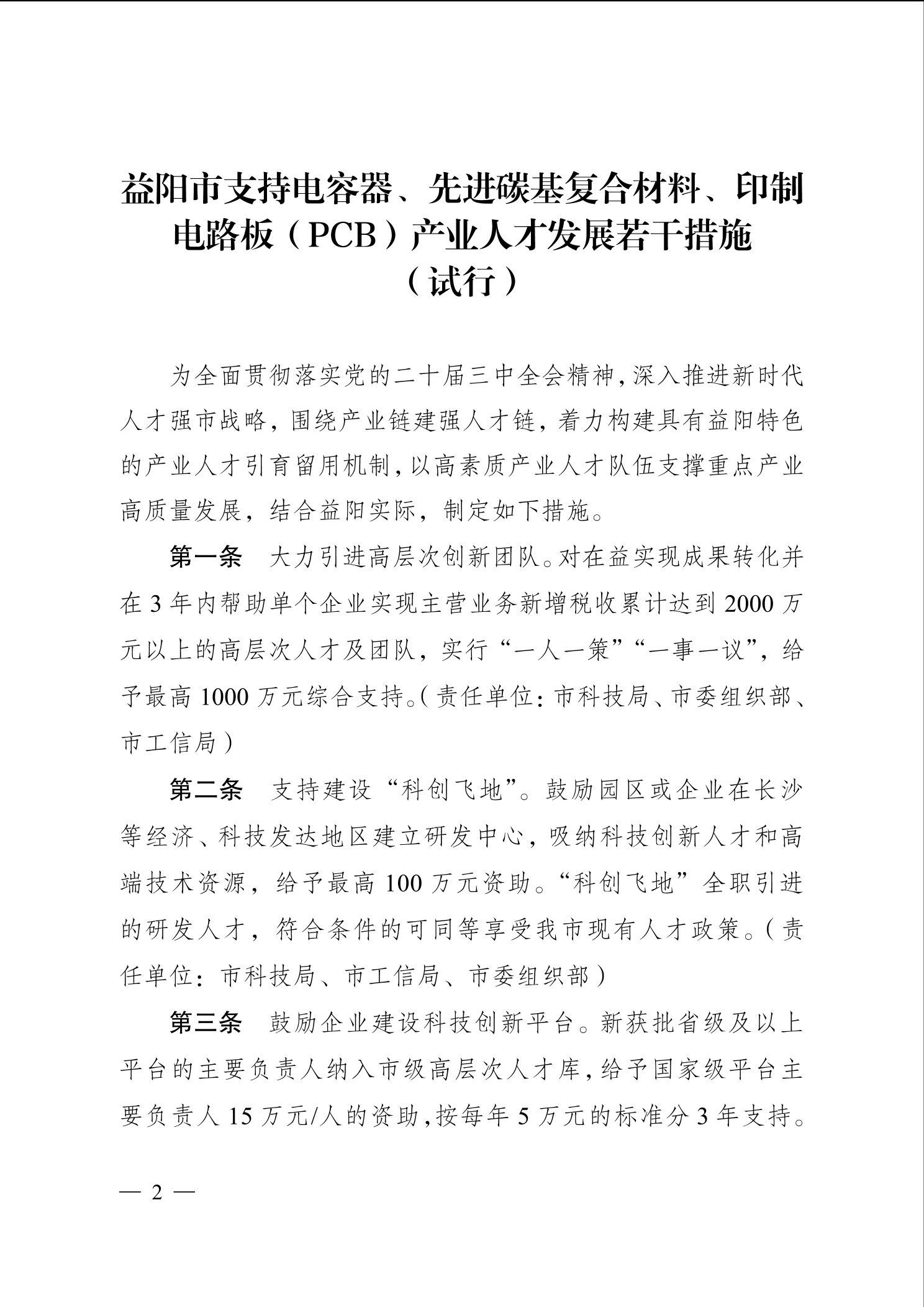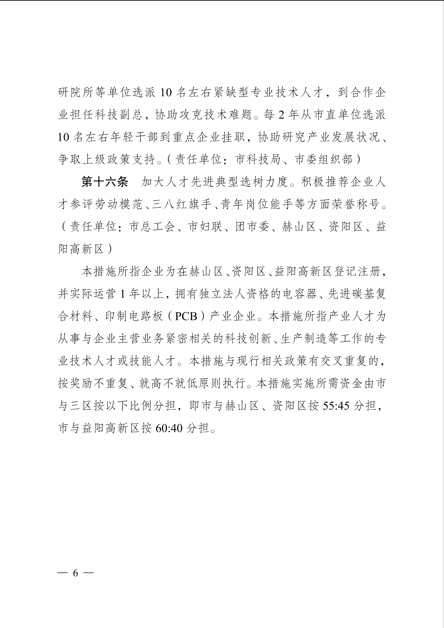 中共益阳市委人才工作领导小组关于印发《益阳市支持电容器、先进碳基复合材料、印制电路板(PCB)产业人才发展若干措施(试行)》的通知