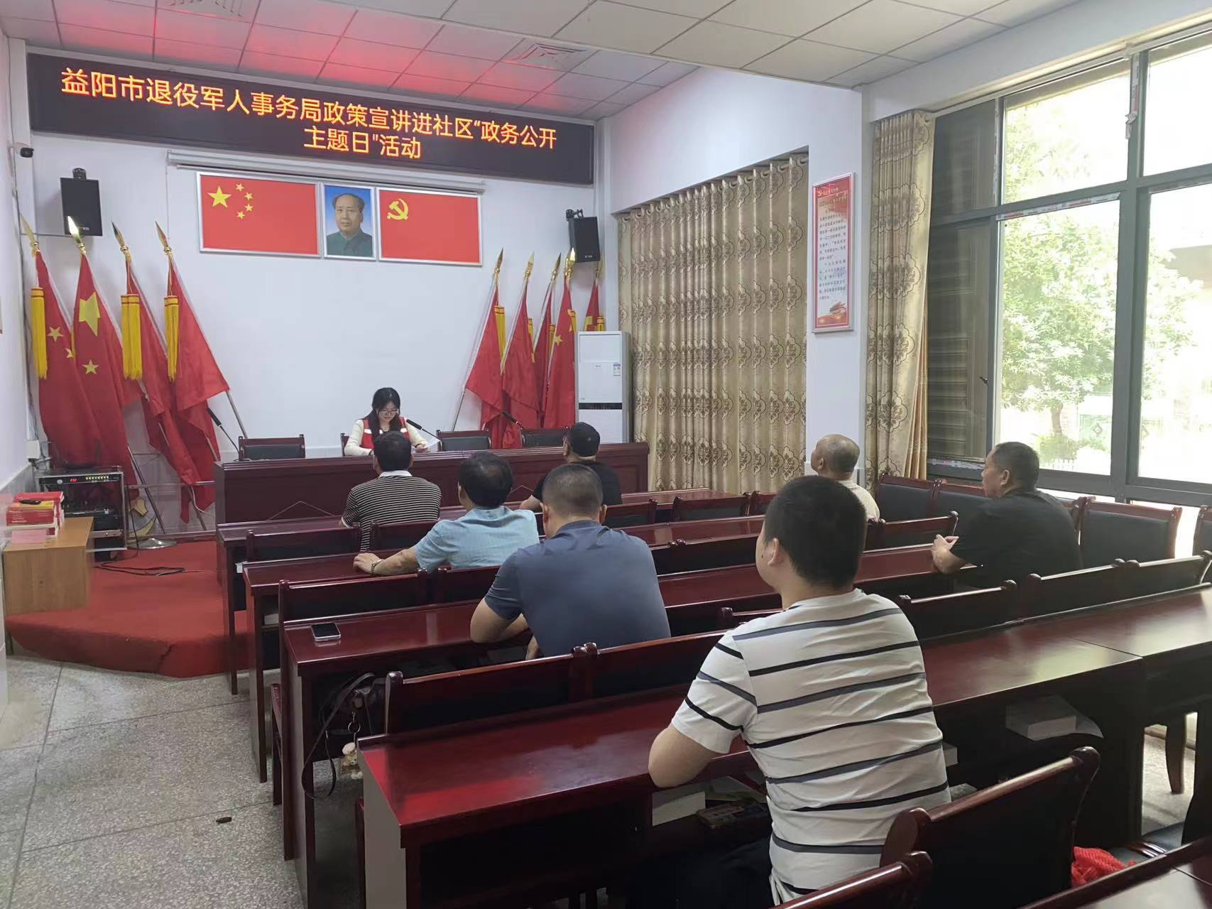 为了加强政策解读、回应关切,保证退役军人的合法权益,更好地为广大退役军人服务。近日,益阳市退役军人事务局政策宣讲进社区“政务公开主题日”活动在龙岭工业园长坡社区开展。