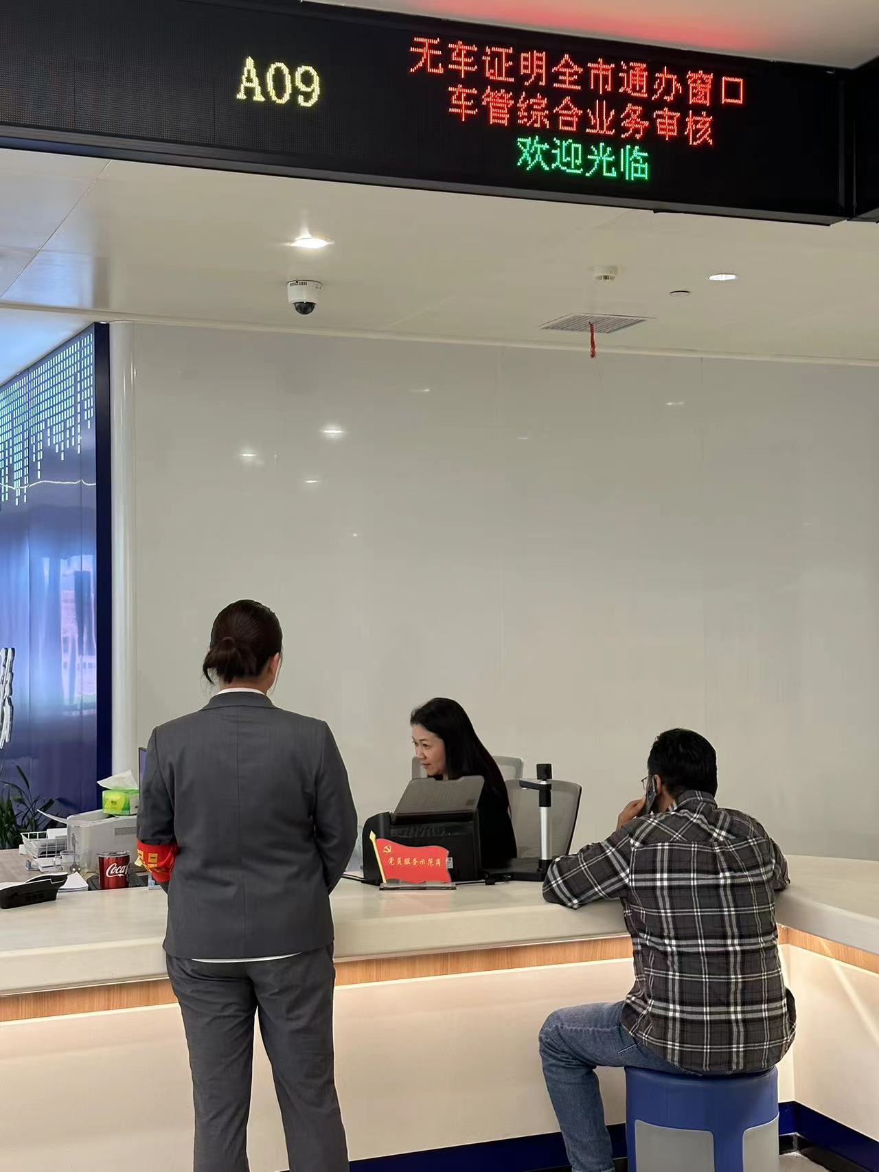 11月8日上午,陈先生来到市民服务中心开具“无机动车登记证明”,公安专区现场服务专员一行全程跟随观摩了换证全流程。