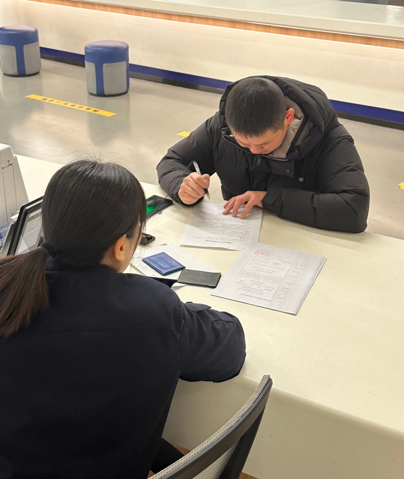 12月11日上午,欧阳先生来到市民服务中心办理轻型蓝牌货车的禁区通行证,碰到公安专区窗口在进行随机满意度现场问卷调查。