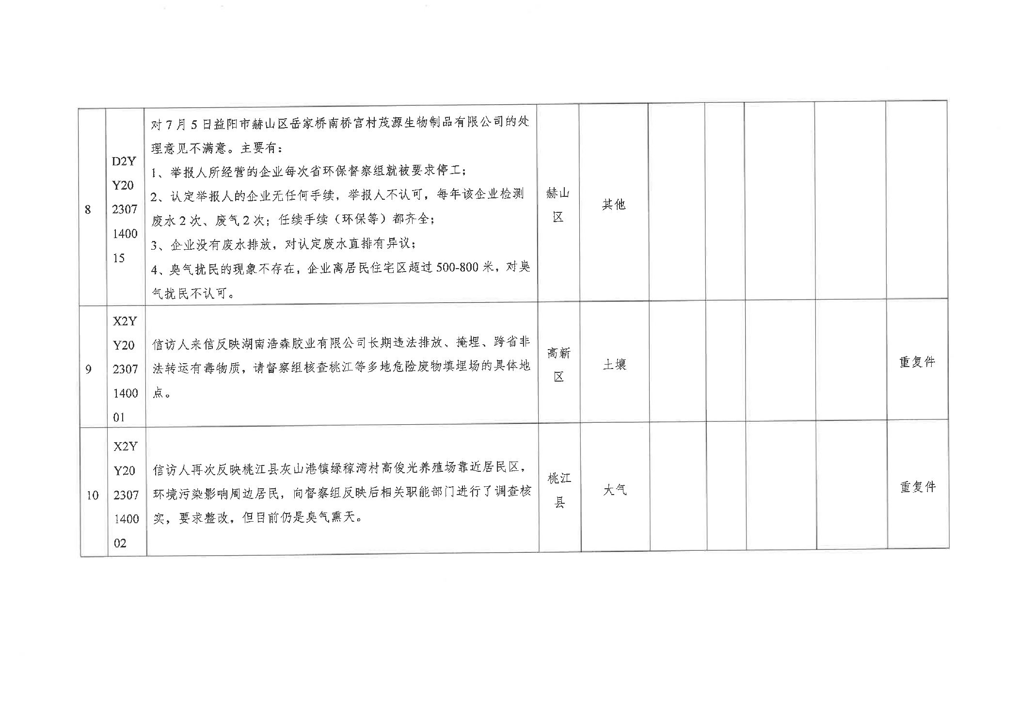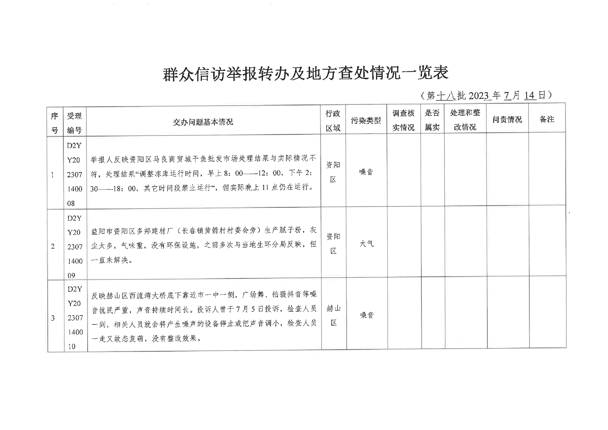 群众信访举报转办及地方查处情况一览表(2023年7月14日)